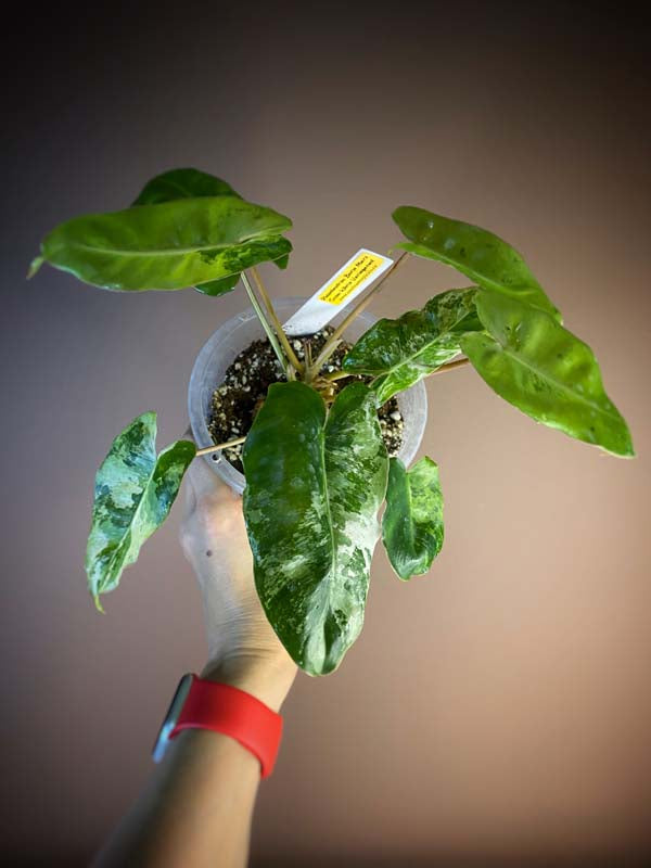 Philodendron Burle Marx Snow White — rare, highly variegated, healthy rooted plant (pictured). Canada-grown and shipped from our local stock.